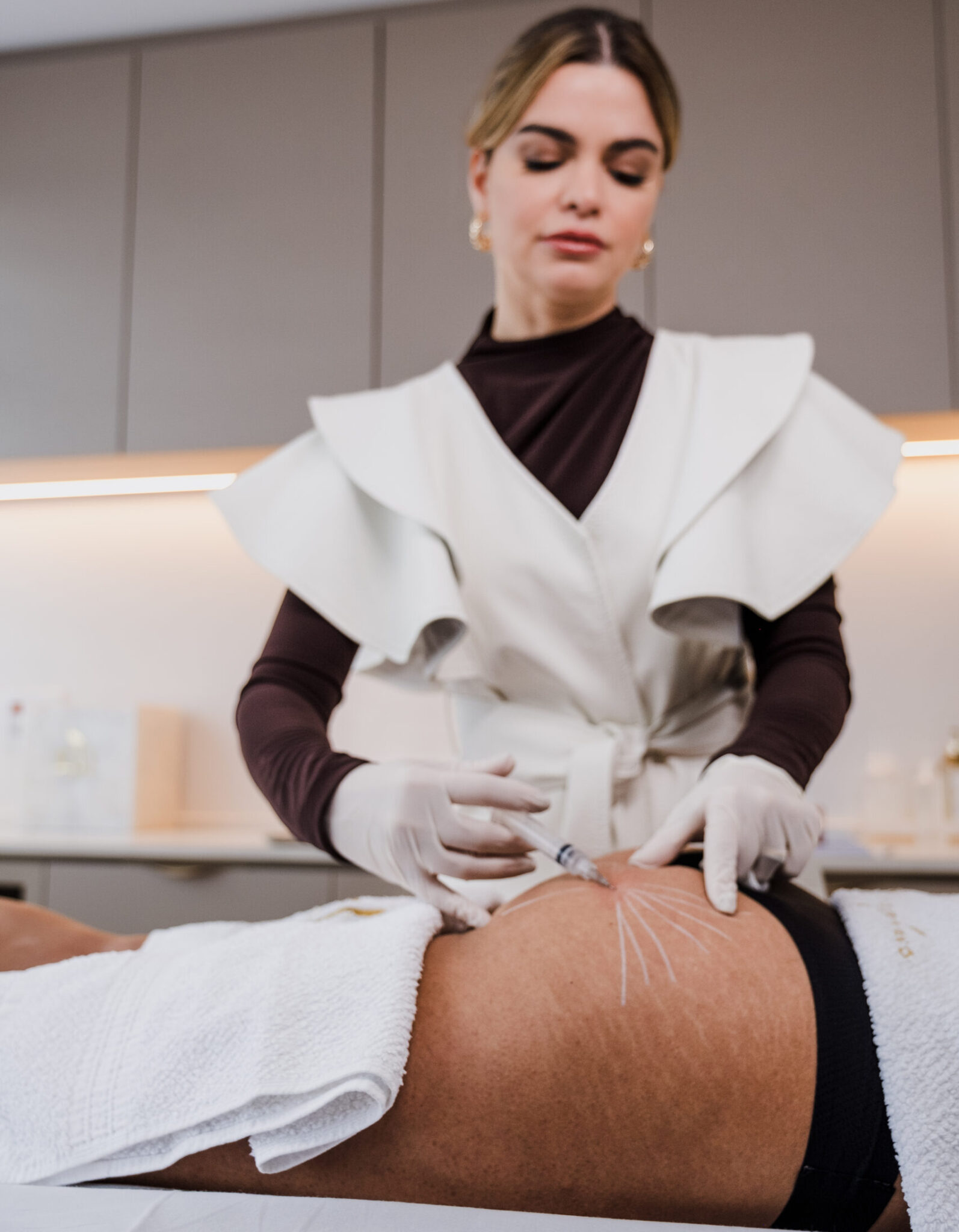 Com formação sólida e anos de experiência em rejuvenescimento corporal, ela planeja cada protocolo respeitando a anatomia e o objetivo de cada mulher, oferecendo segurança, acolhimento e resultados naturais.